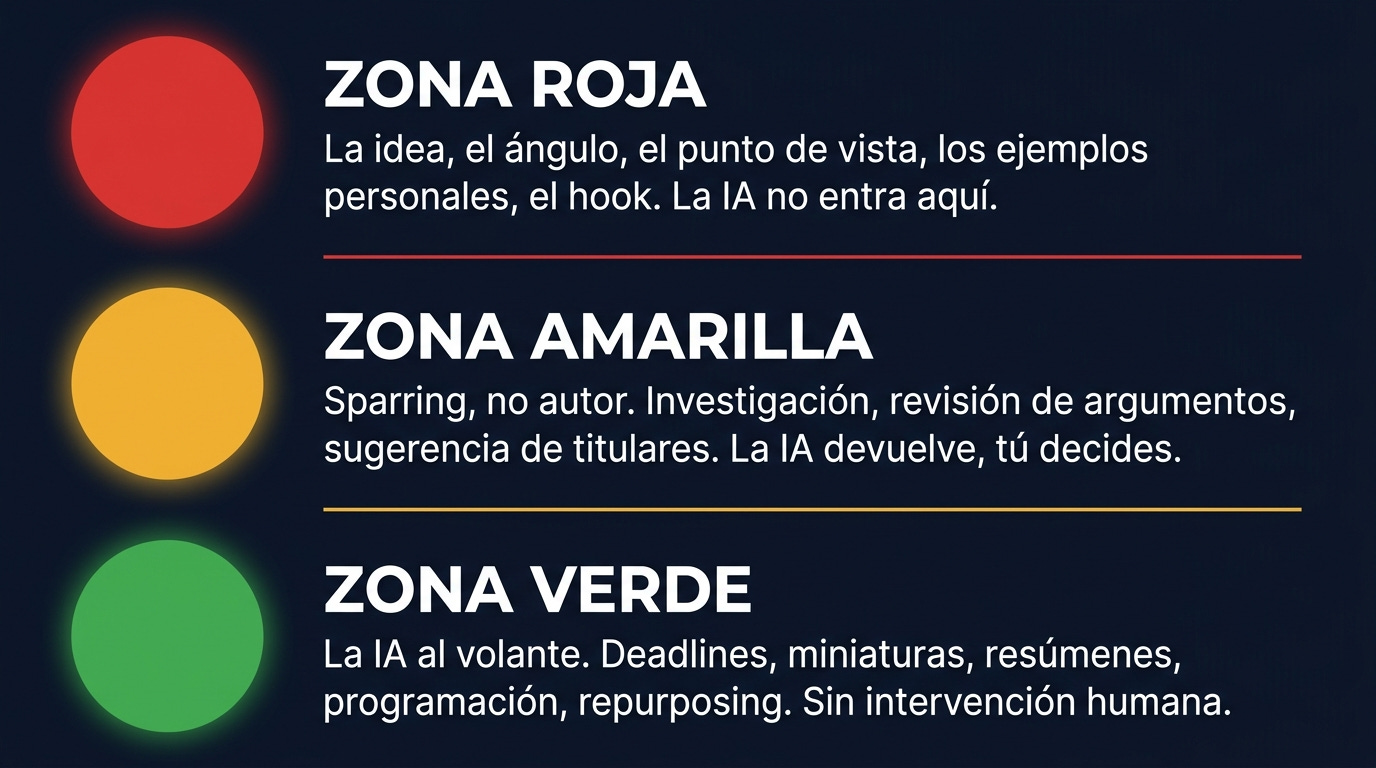 Zona amarilla: La IA como sparring, nunca como autor.