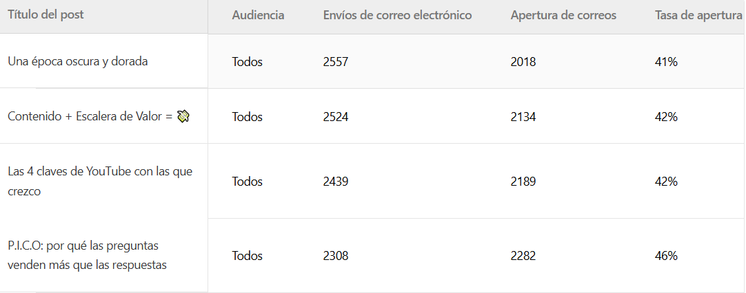 Para empezar, porque cada envío es un mundo, pero luego, es que Substack mezcla todo y no sabes al final de dónde viene cada dato.