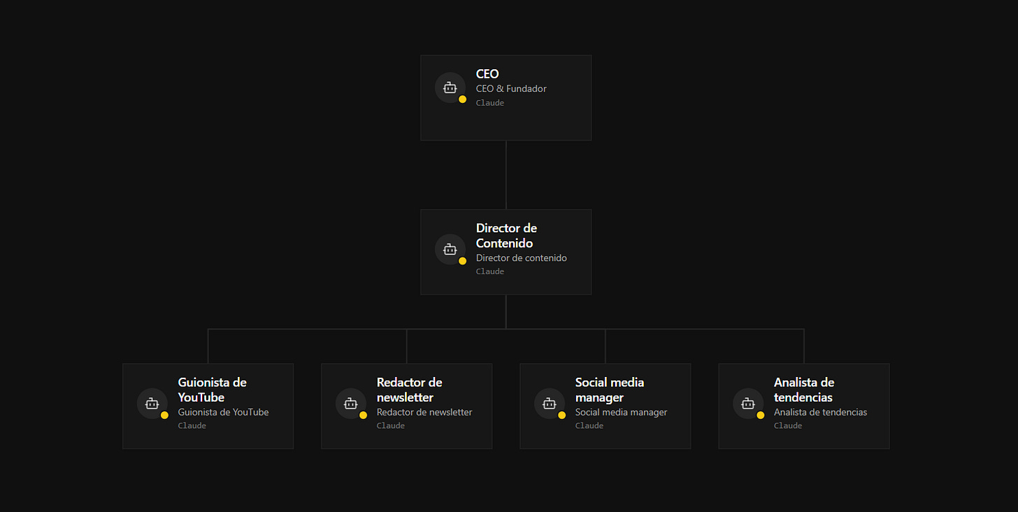 Hace un año necesitabas saber programar para automatizar esto. Hace tres meses necesitabas encadenar prompts como un mono. Hoy tienes empresas enteras funcionando con un organigrama.