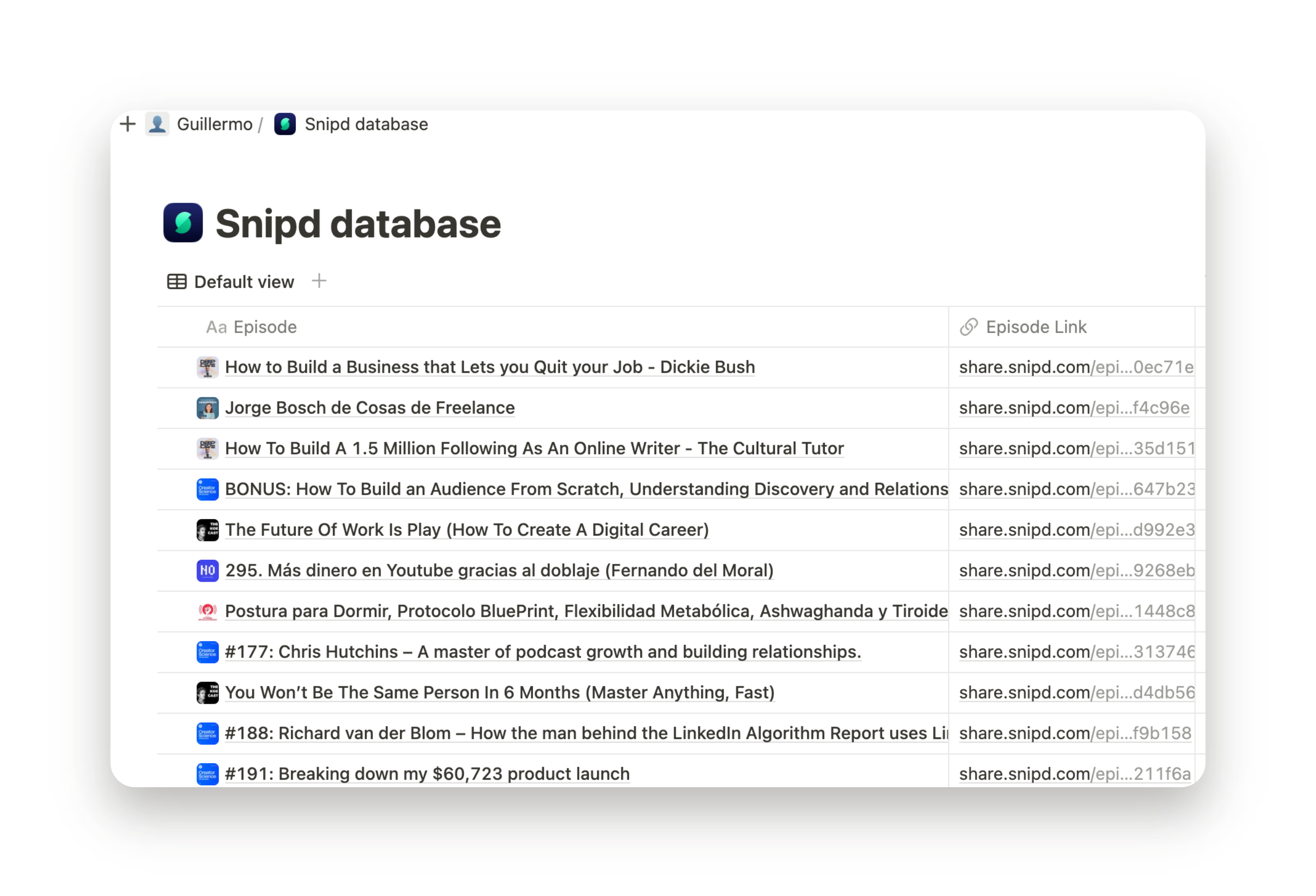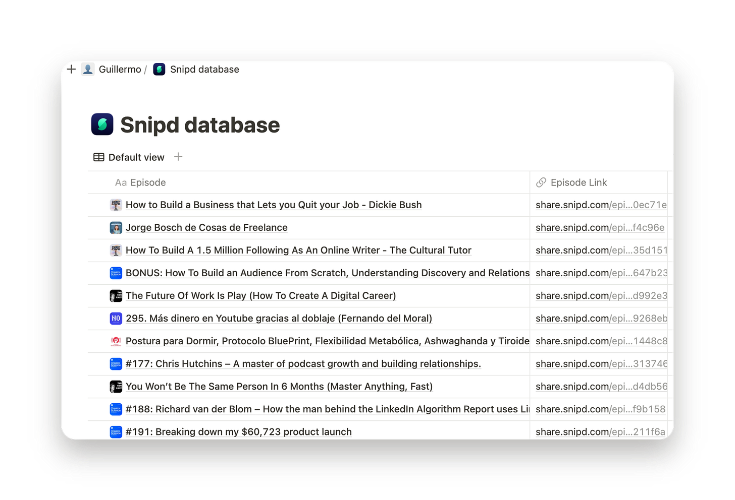 En el caso de los pódcast, tengo ya un listado de podcasters que me inspiran y cuando los escucho lo hago con el podcatcher Snipd que me permite capturar las secciones que me interesan simplemente tocando mis auriculares.